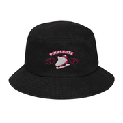The Pinkskate Denim Bucket Hat is so cute you'll wear it all the time. Features excellent embroidery of a cute ice skating boot with a bow. This is a comfortable hat with enough versatility to go with all of your cutest casual outfits.