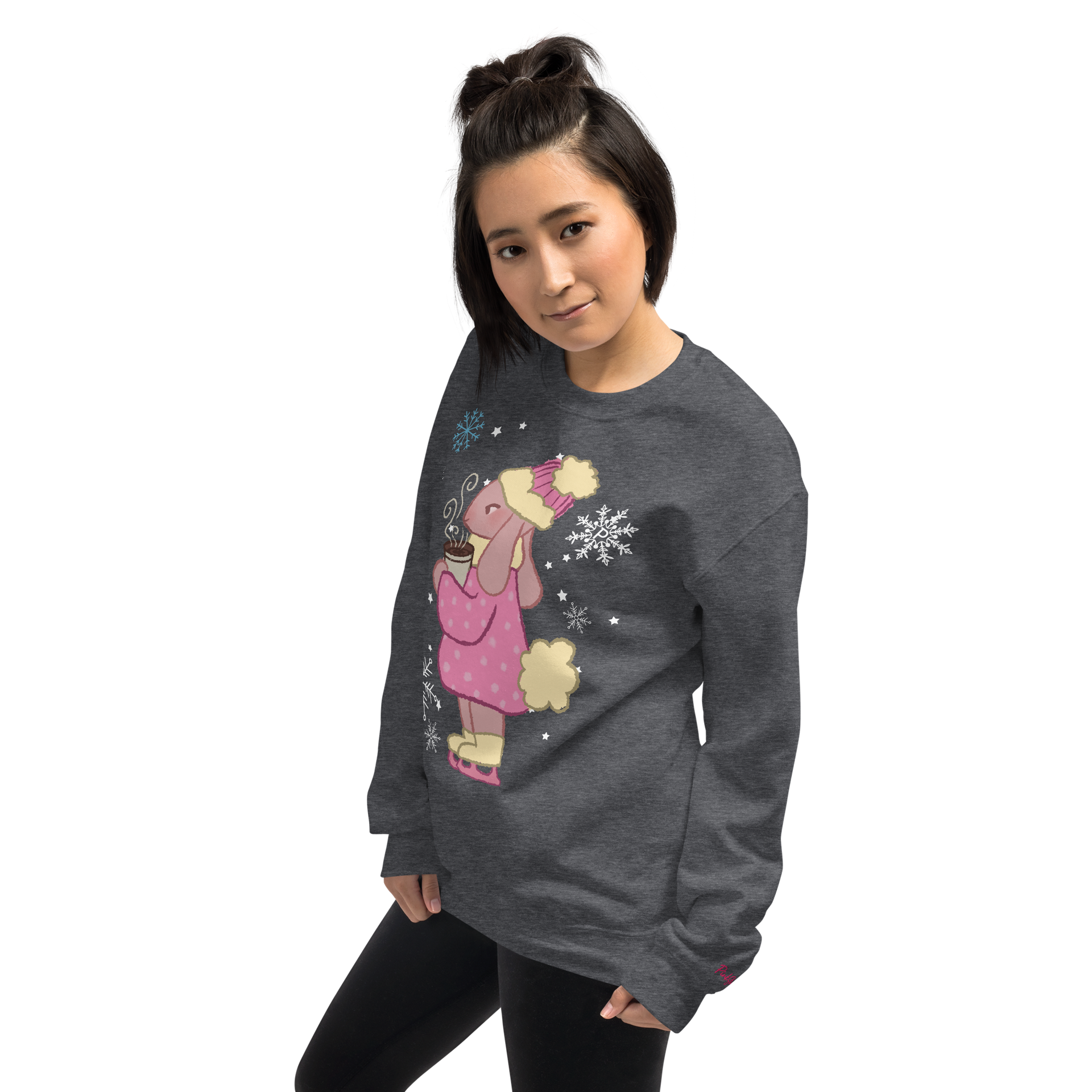 Fall in love with the Skate Bunny Sweatshirt. A soft and quality made pullover with a comfortable and relaxed fit. Features an original design of an adorable bunny in her very own pair of ice skates, sipping hot cocoa. Comes in five fun colors your sure to love them all!