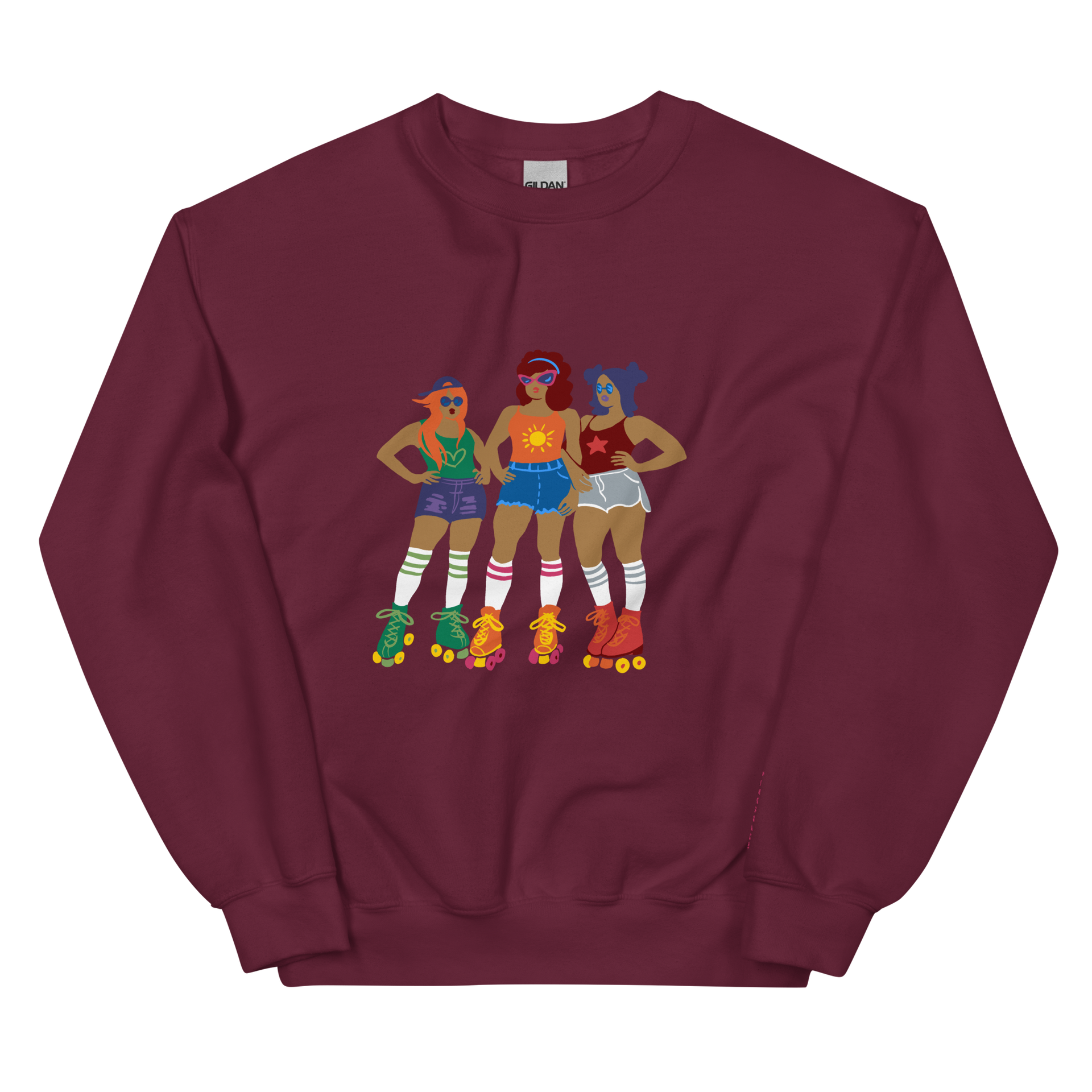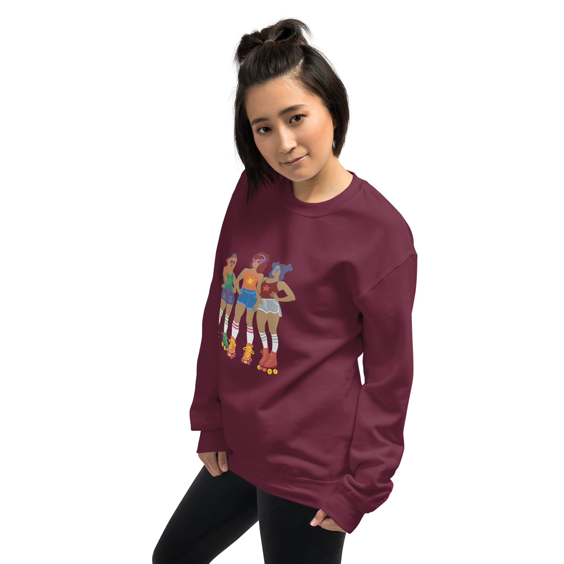 Fuel your roller skating passion in our adorable Roller Queens Sweatshirt. A quality made, sturdy design that keeps you cozy and warm on chilly days. The Roller Queens Sweatshirt is featured on a unisex cut for a comfortable and relaxed, oversized fit.